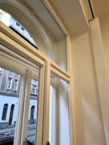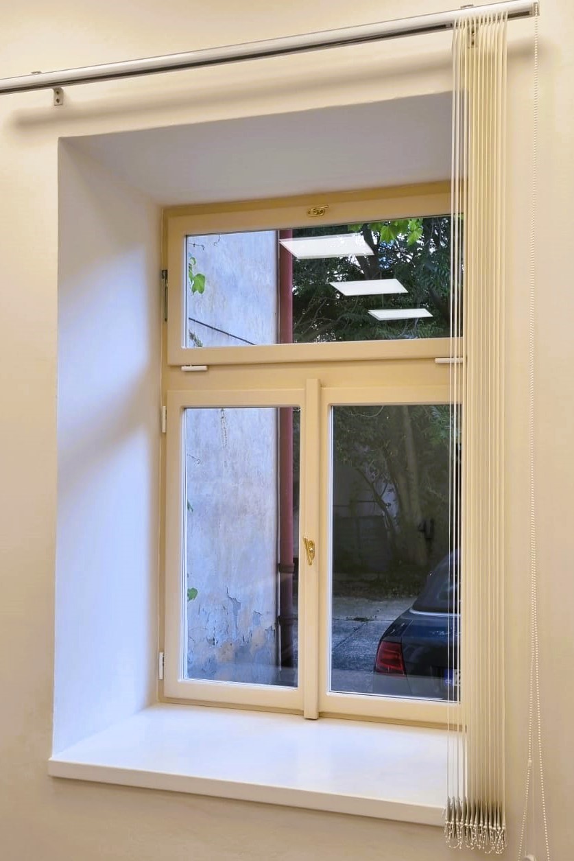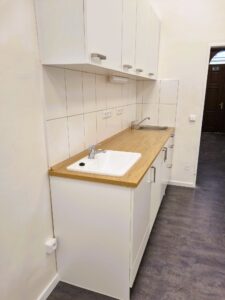 Provedení stavebních prací, spočívající v částečné změně dispozice NBP, ve výměně dveří a repasi oken, ve výměně elektroinstalace, VZT a ZTI. Dále byly provedeny opravy podlah, omítek a malířské práce.